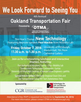 On Friday, October 7, 2016, Oakland Transportation Management Association hosted the 4th Annual Oakland Transportation Fair. Our theme for this year was “New Technology”.